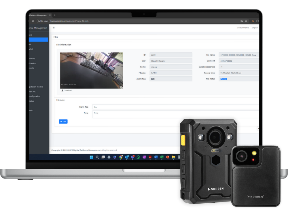 Norden’s cloud-based Digital Evidence Management (DEM) software provides a seamless and secure storage and management platform for all media captured by body cameras.